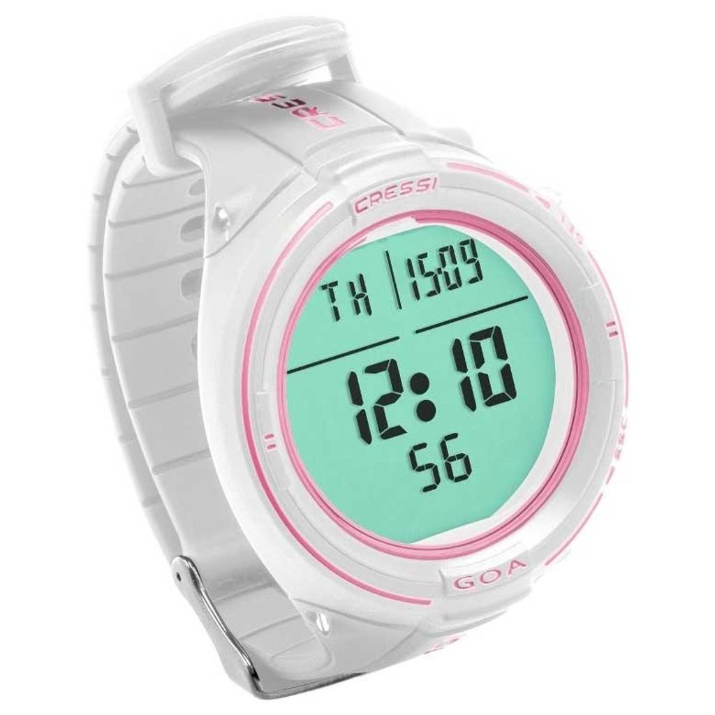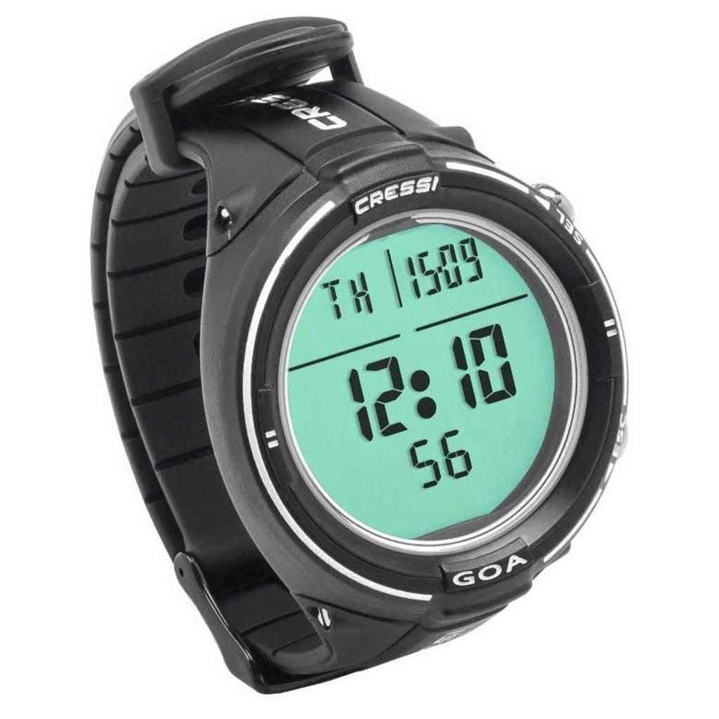 The GOA has a diameter of only 48 mm and a high contrast display of 35 mm. It is a scuba diving/apnea watch-computer of extremely reduced dimensions. It is also an ideal watch for other underwater activities, thanks to the deactivation option of the “dive” functions that avoids unnecessary alarms ringing while you’re snorkeling or swimming. The display is made of mineral glass and the case is heavy duty with steel buttons that have an underwater resistance of up to 120m. Rubber wrist band with stainless steel buckle. Plastic/Steel bezel and back cover.