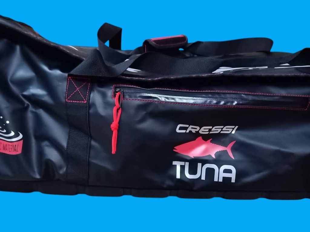 TUNA ROLL is the evolution of the mythical Gorilla with wheels and a rigid bottom. It is made of resistant Tarpaulin © laminated PVC of 7 tenths of thickness: practically 100% watertight and, therefore, very practical so as not to wet the boot of the vehicle. Rigid watertight heat-sealed bottom to the PVC area. Very light and that allows its use as a trolley without the need to insert a metal structure. The result is an extraordinary combination of lightness, capacity, tightness and easy portability.