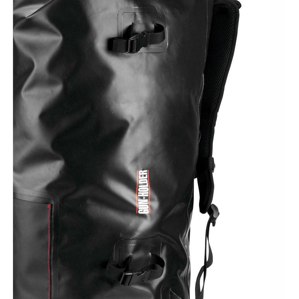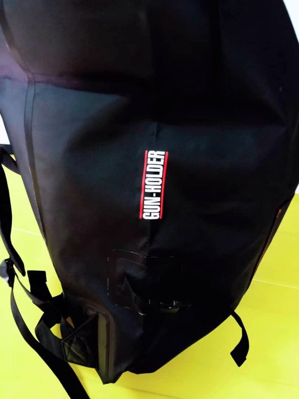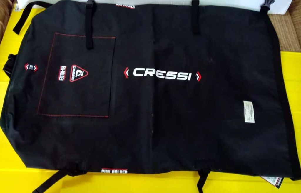 It has two straps to hold objects in each side that allow the transport of two spear guns.