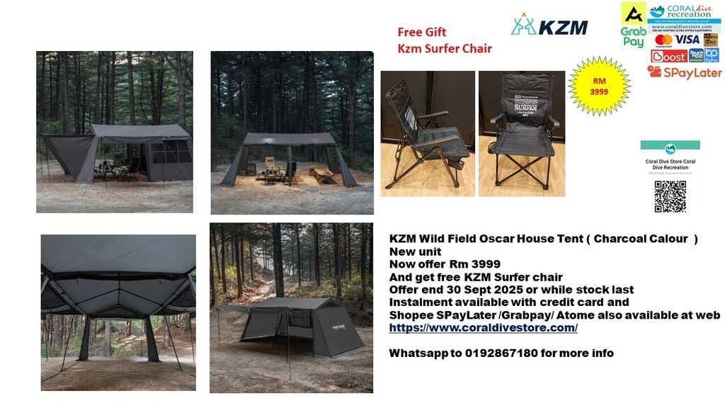 KZM Wild Field Oscar House - Charcoal wiith free KZM surfer Chair