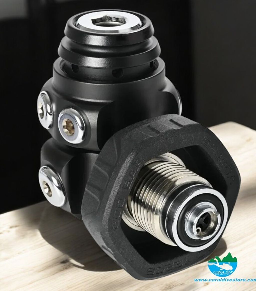The first stage is coated in Mares' exclusive “Black Intense” finish, a ceramic-based material known for its exceptional surface hardness. This makes the regulator highly resistant to scratches, wear, corrosion, UV rays, and chemicals—ensuring it not only performs at the highest level but also maintains its sleek appearance over time.