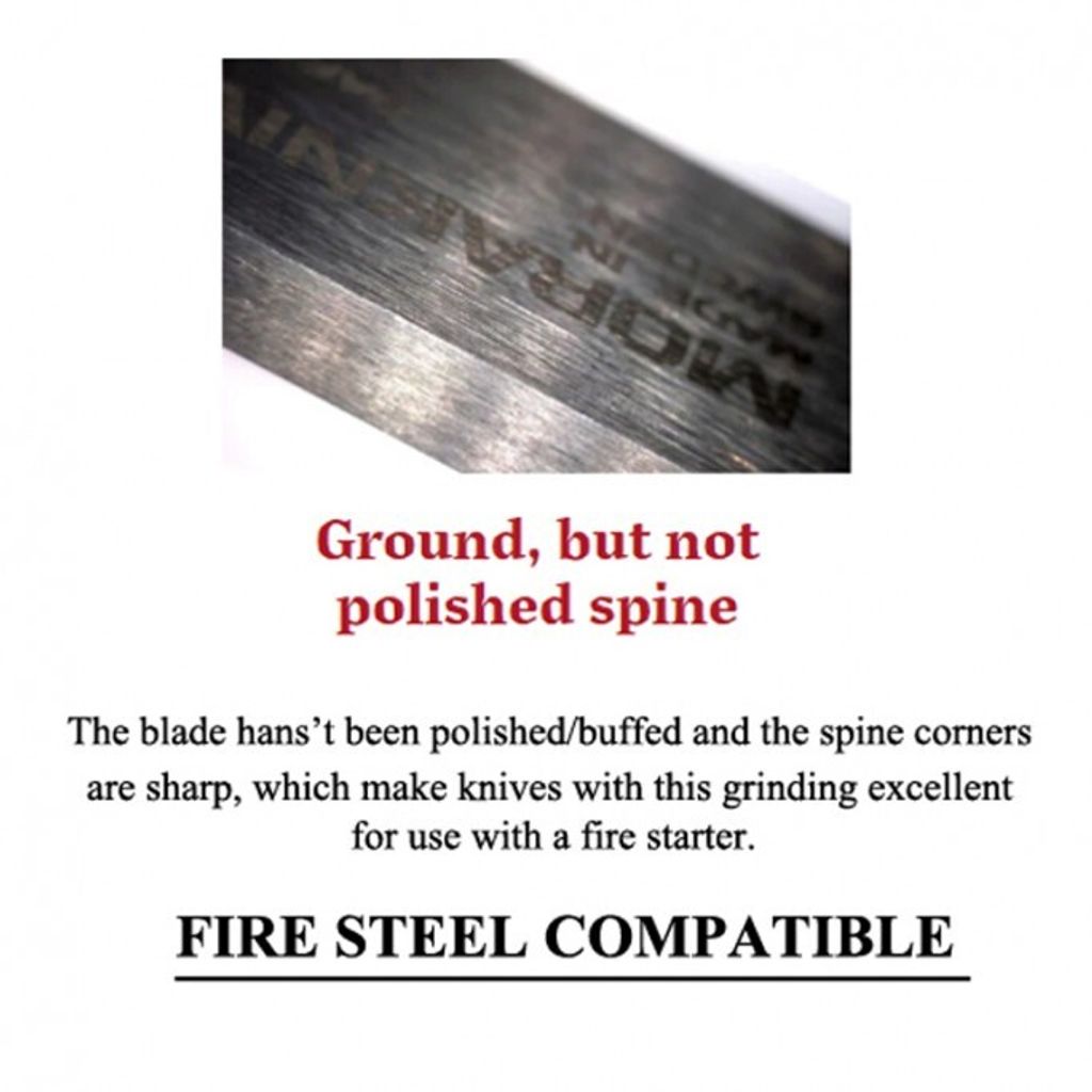 The ergonomic barrel-shaped polymer handle features a soft friction grip, finger guard and a 2.5 mm thick, polished profile-ground blade made of recycled Swedish stainless steel, which provides both strength and stability in every cut. Thanks to the blade and handle design, the knife is ideal for working safely and efficiently in various weather conditions during all seasons of the hunt. The polymer knife sheath is symmetrical, which means it suits both right and left-handed users, and has a leather strap made of Swedish vegetable-tanned leather that can be attached easily to your belt. Compatible with Morakniv Multi-Mount Kit for Kansbol.