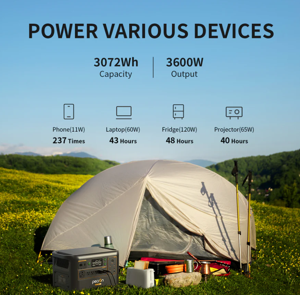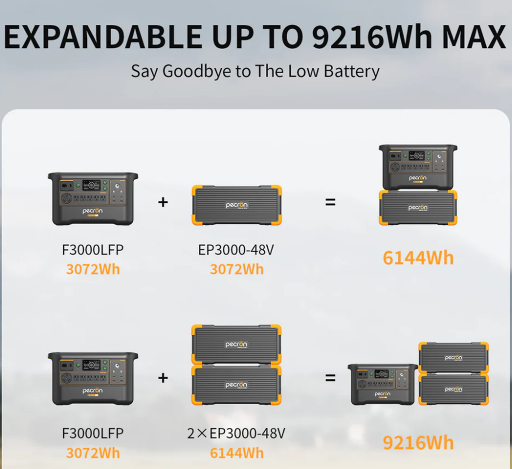 PECRON F3000LFP Portable Power Station 3600W 3072Wh option with 2 or 3 years warranty.