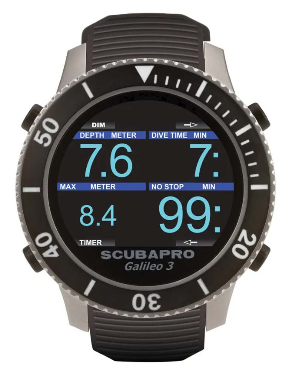 With a vibrant color display for easy readability, the SCUBAPRO Galileo 3 (G3) offers a modern watch-style dive computer in a classic timepiece look. Utilizing Galileo’s trusted menu design and four button control, it’s extremely intuitive to navigate through dive modes, two algorithm choices, screen styles and other personalized dive management options. Powered by a rechargeable lithium battery and built to last with a stainless steel housing, the G3 delivers everything you need in a dive computer with the comfort and style of an everyday wristwatch.