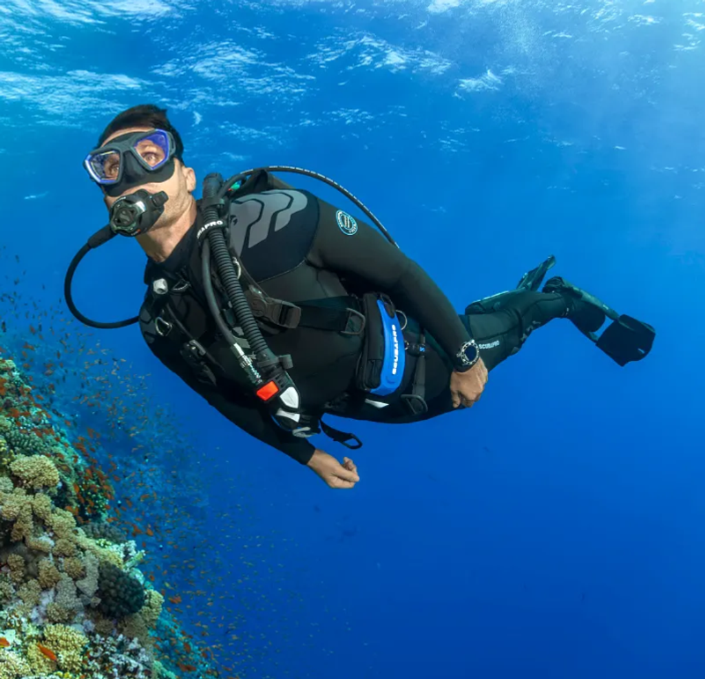 • Body grip gel prevents the trim jacket from shifting or riding up during the dive.