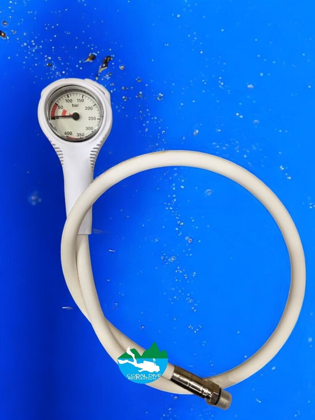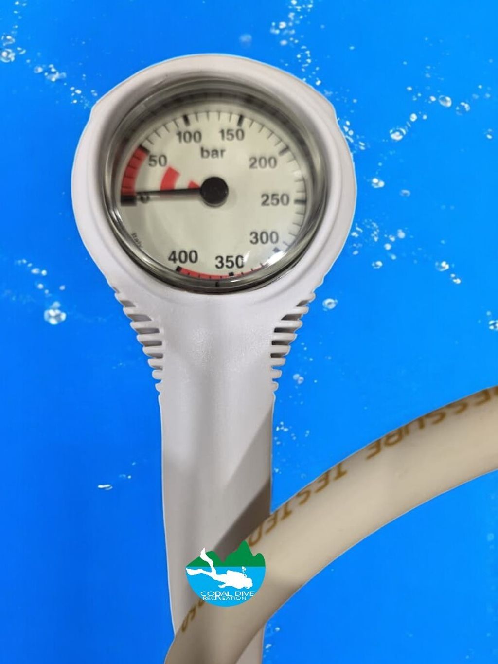 Low profile pressure gauge with 400 bar dial and luminous face on 80cm HP hose with swivel mounting. High-quality and reliable pressure gauge that features: