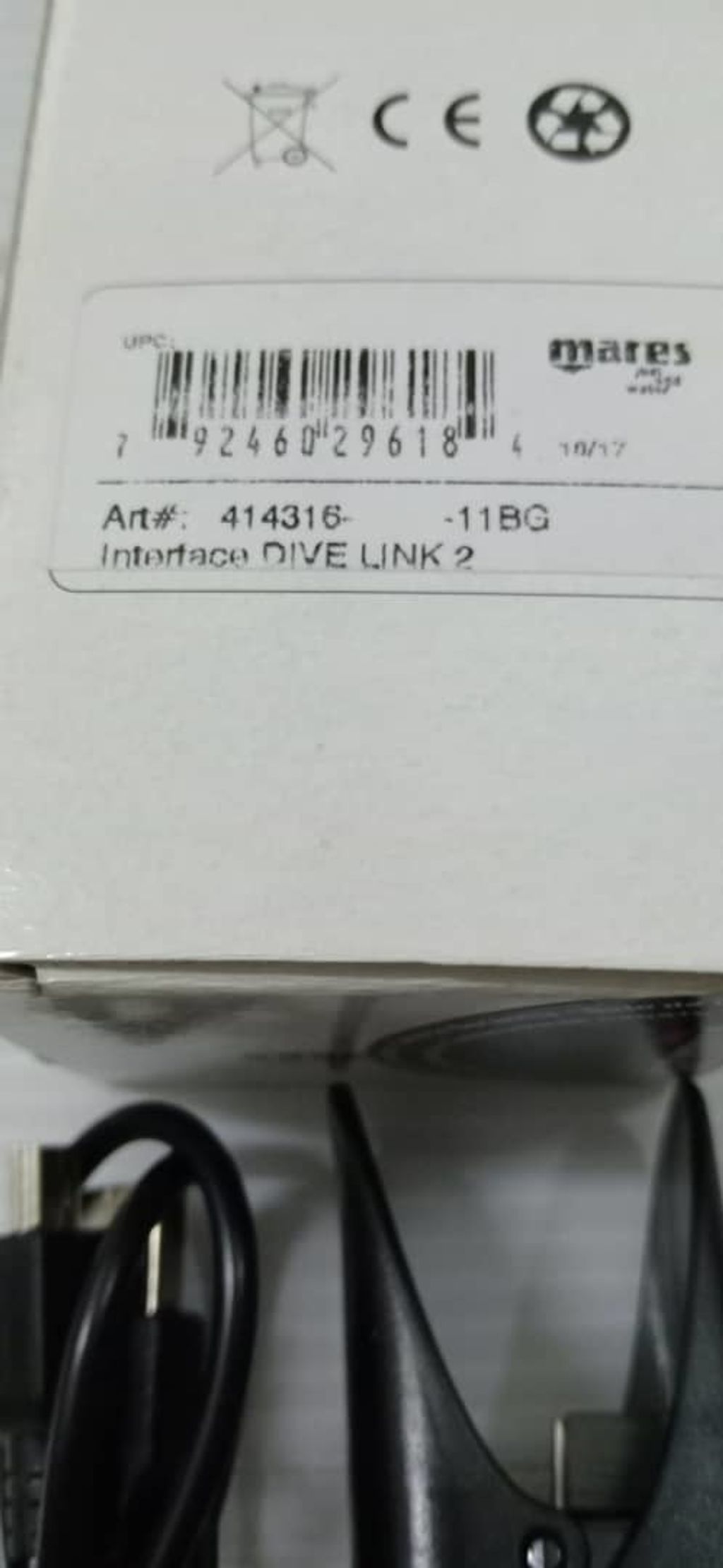 A USB interface cable for Mares' puck pro and smart computers.