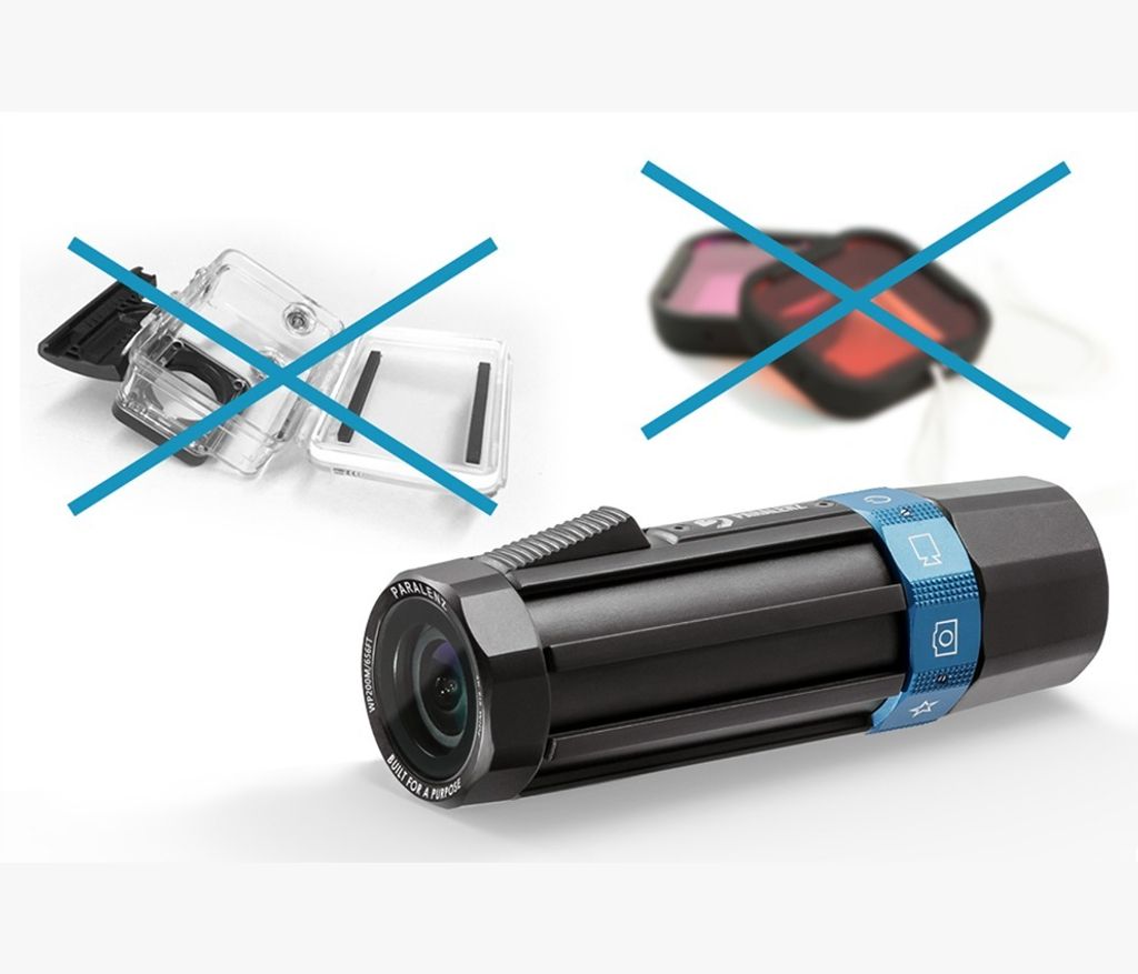 Most other underwater action cameras footage is either tinted green or blue unless you use additional filters. No need to think about filters or technical stuff during your dive with the Paralenz. The camera has a built in pressure sensor and auto corrects the color according to your current depth. If you plan to dive below {65 ft | 20 m} a wide beam flashlight is suggested for the best video image quality.