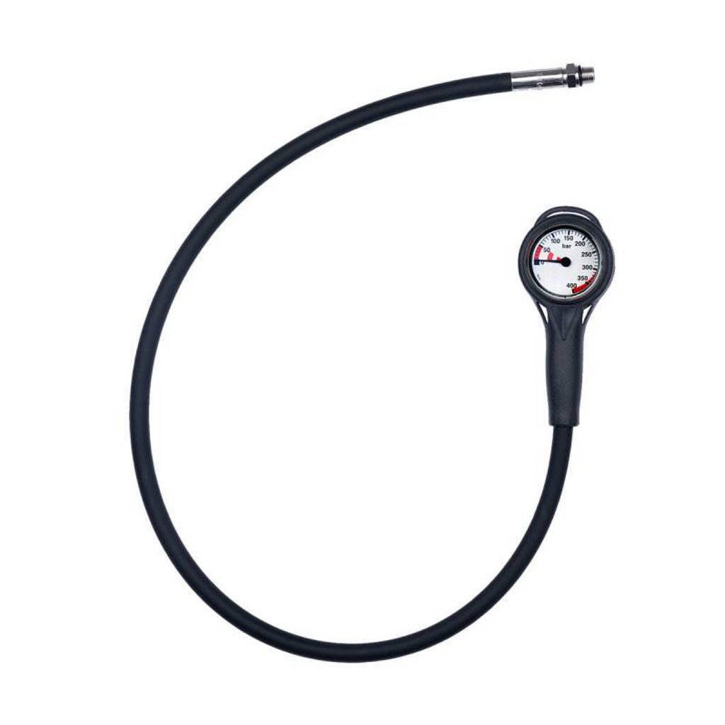 Low profile pressure gauge with 400 bar dial and luminous face on 80cm HP hose with swivel mounting. High-quality and reliable pressure gauge that features:
