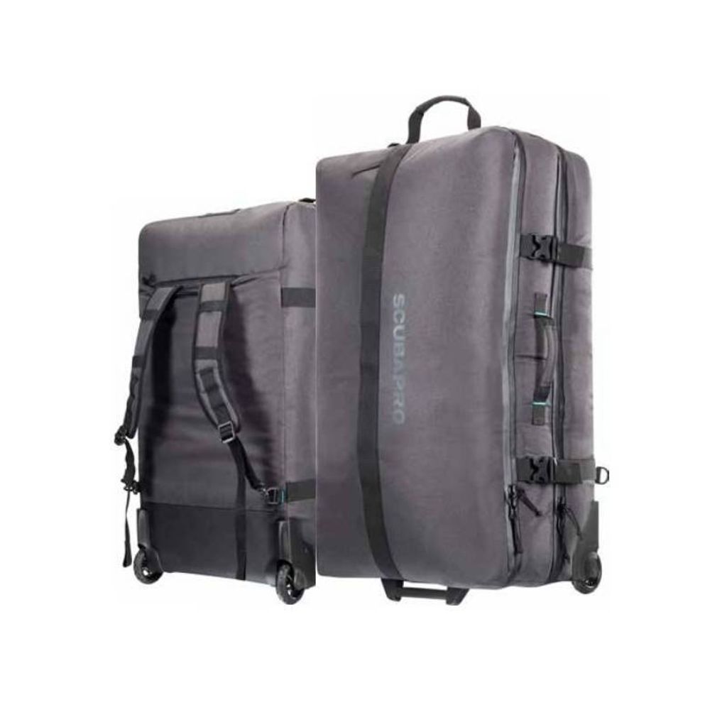 An ideal gear carrier for world travelers, the new Definition Duo 118 is a premium, double-compartment duffel bag offering a convenient U-shaped opening and a rain-proof YKK zipper with double sliders, black pull cords and locking loop for security. Made with new recycled two-tone gray fabric with blue stitched bar tack reinforcements and a black inside lining with the SCUBAPRO logo, this bag is loaded with stowage options and can be rolled or carried with a choice of top or side web handles or new adjustable backpack straps. Top compartment features 2 semi-rigid, rotating bars which allow the bag to compress if not used and provides stability when loaded.