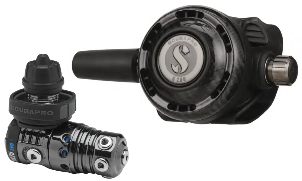 An upgrade to our popular G260 technical diving system, the MK25 EVO BT/G260 Carbon BT regulator system delivers superior durability with a premium carbon fiber front cover and a corrosion resistant Black Tech DLC coating. It’s designed to be the best regulator system for cold water, silty diving conditions and technical diving.