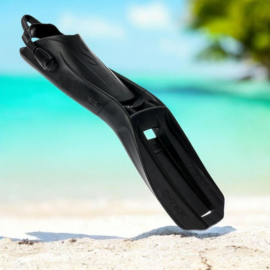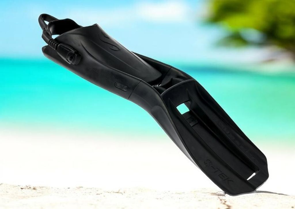 - The two-piece design of the S-Tek Fin, with a separately molded upper and foot pocket, makes it easy to transport.