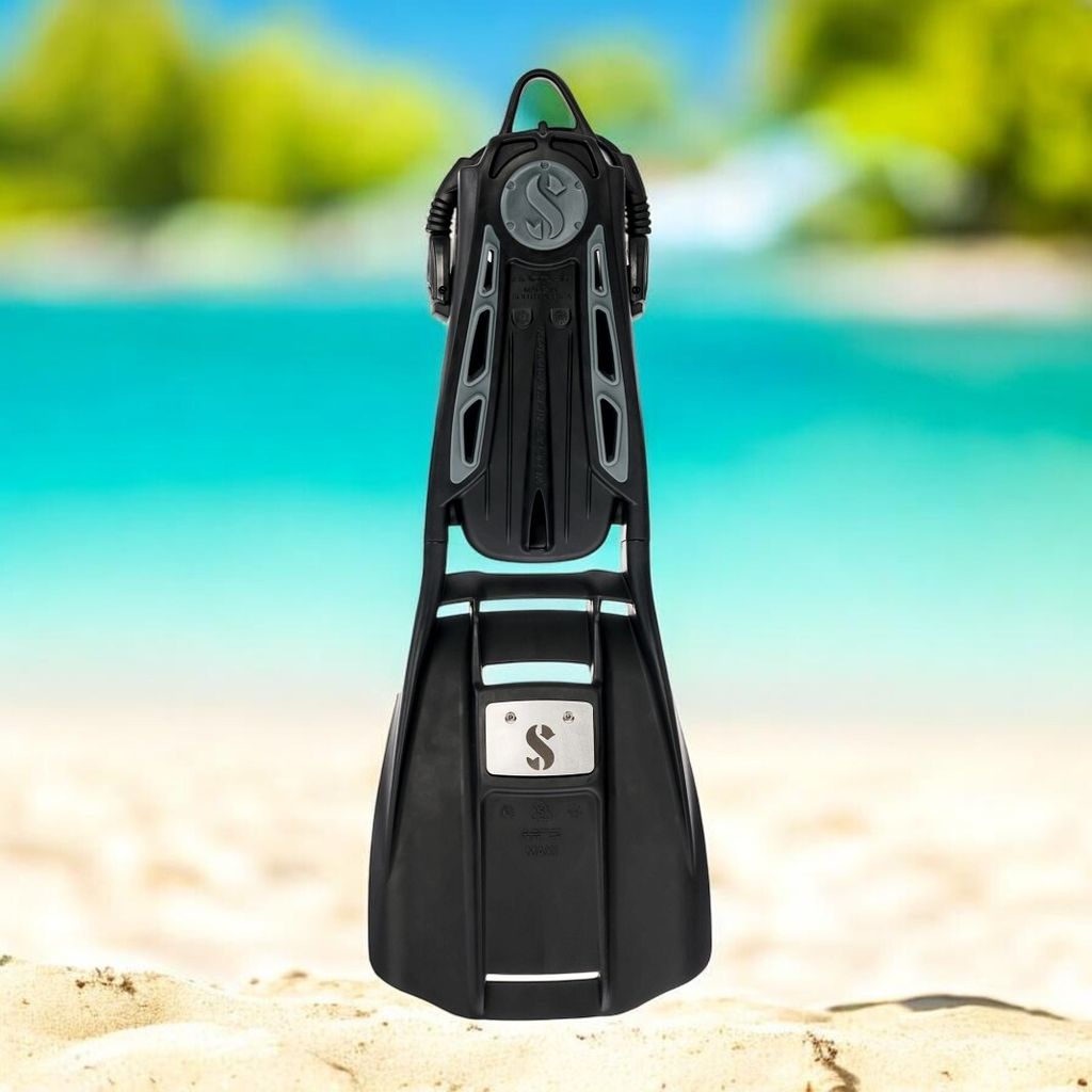 - The complete fin is available in black in 5 sizes (XS, S and M with Midi blade; L and XL with Maxi blade) and includes a multi-tool and 2 sets of locking plates, a stainless steel weight system and a storage bag. SCUBAPRO boat.