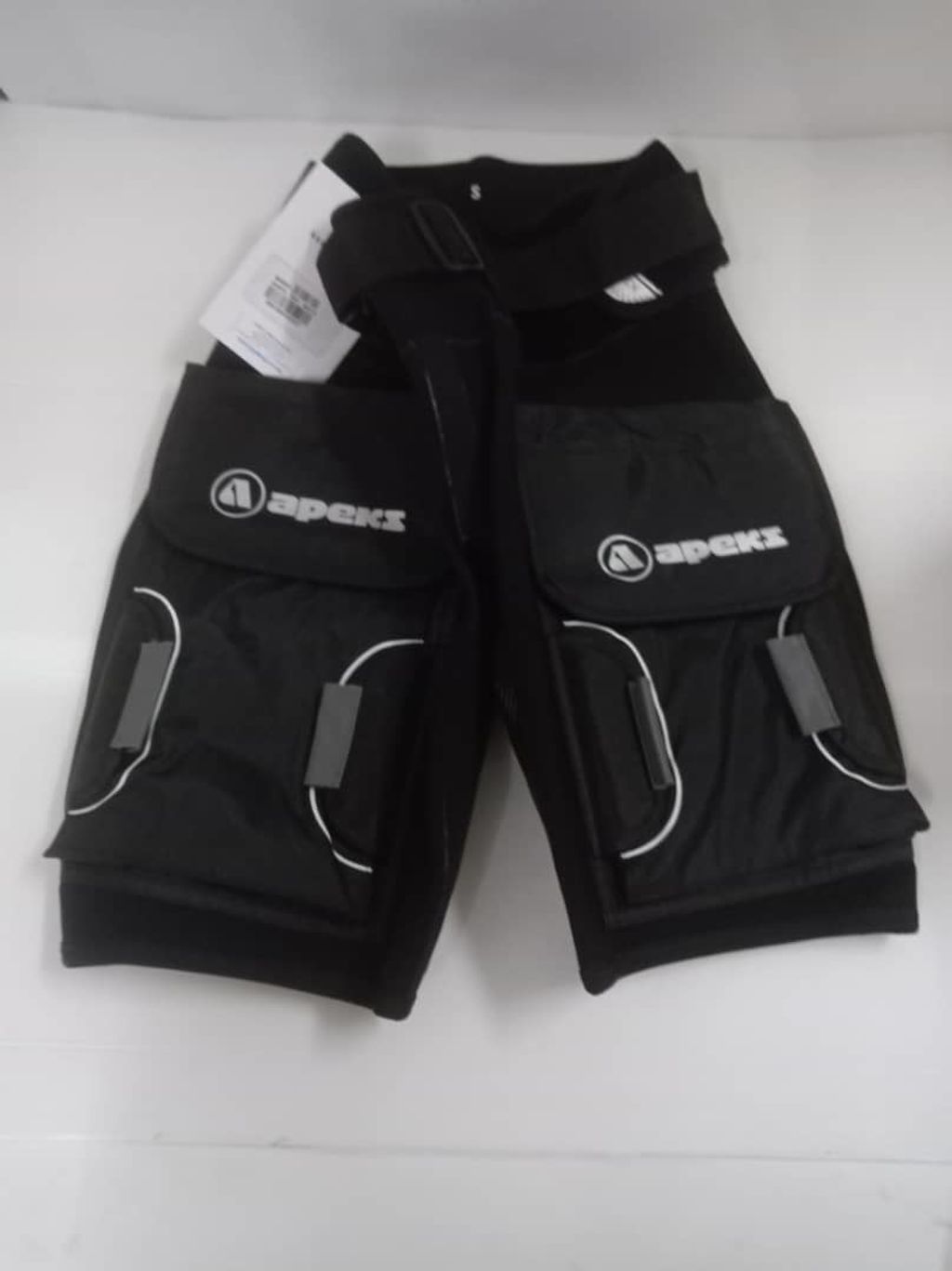 Can be worn above a dry suit or a wetsuit to create additional pocket space, or can be worn alone for use in warm water or for other aquatic activities. Ideal for warm water diving conditions where the additional storage of slates, spools or torches is required while wearing a wetsuit. The protective rubber prints on the back reduces friction damage while increasing grip and would be very useful outside of the dive environment, for example on a jet ski or RIB.