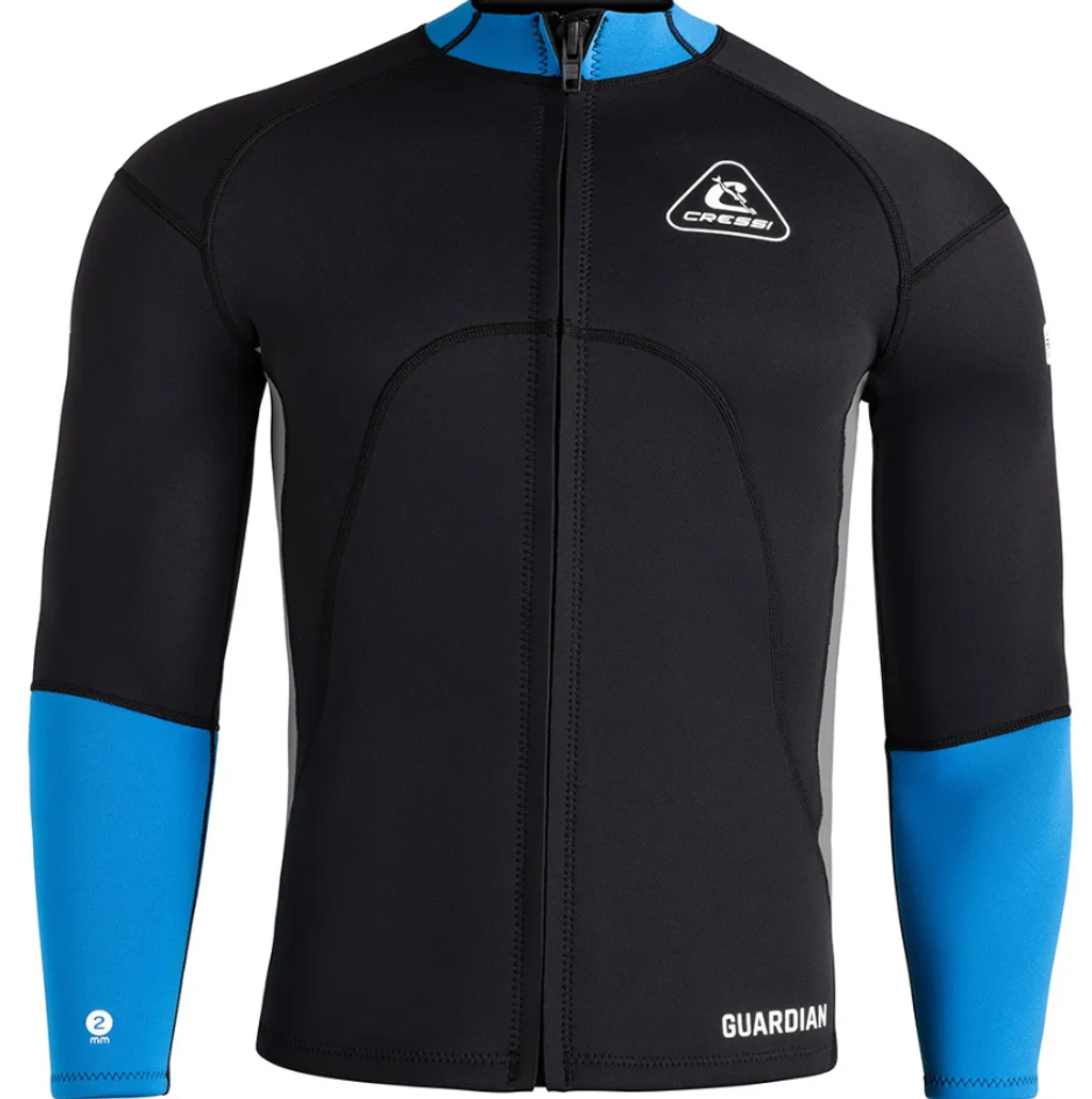 Guardian Neoprene Jacket for adults is crafted from high-quality, 2mm double-lined elastic neoprene with flatlock stitching, making it more flexible, comfortable, soft, and durable. This jacket offers an incredibly stretchy, comfortable, and snug fit for swimming, snorkeling, and other water sports. It provides excellent sun protection and helps prevent injuries. The long-sleeve design shields you from sunburn and abrasions. Featuring a front YKK plastic zipper, the jacket is easy to put on and take off. It conforms to your body, offering greater freedom of movement, making it the perfect choice for all your aquatic adventures.