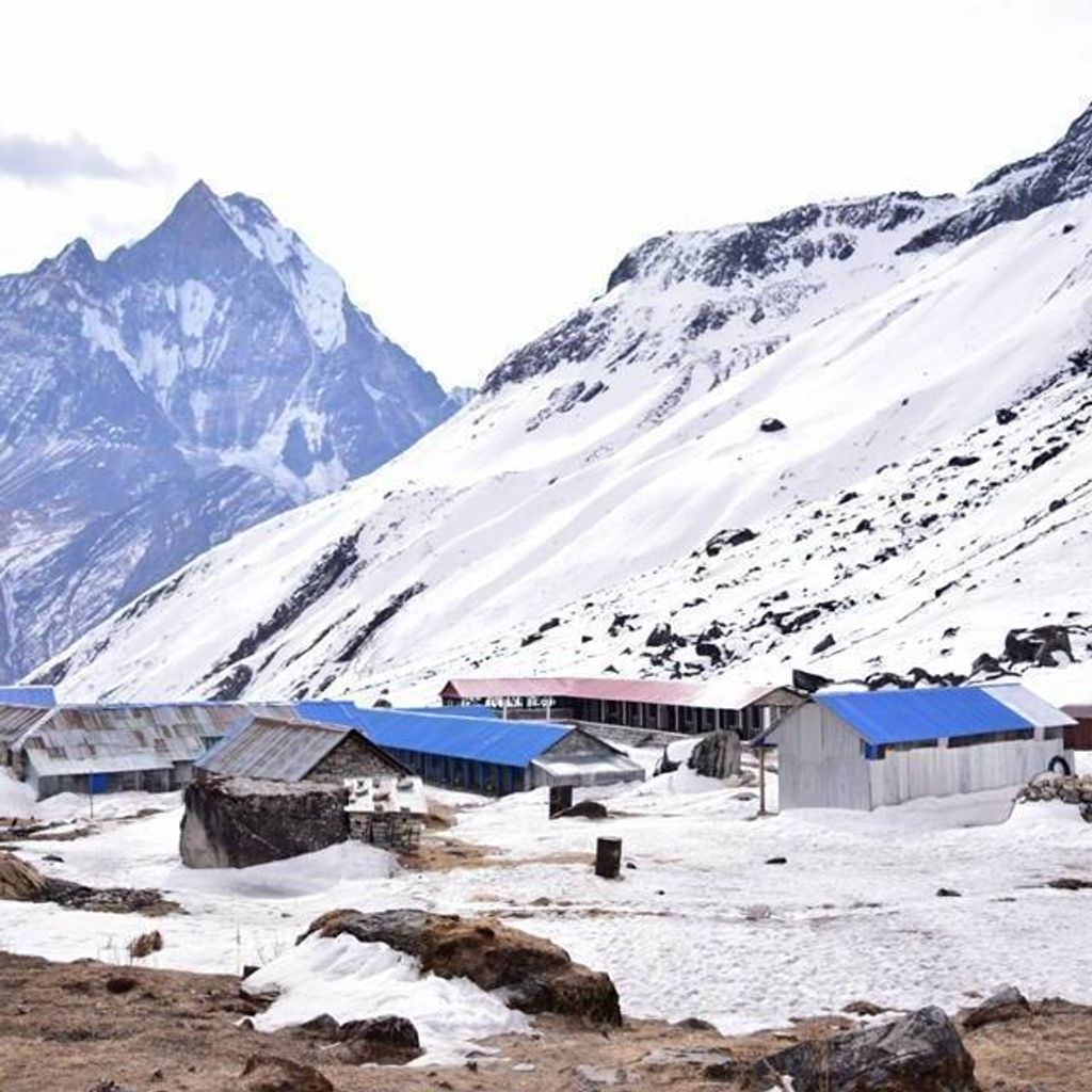 Climb gently through a river bed then over a steep trail over to the mountain side. The hike from Bagar to Machhapuchhre Base Camp is somewhat strenuous. From Machhapuchhre base camp we get excellent views of the majestic Machhapuchhre along with Mt. Hiunchuli, Annapurna South, Annapurna I, Annapurna III, Gandharvachuli and Gangapurna which is certainly a rewarding experience. The vegetation disappears on our way to ABC and the path widens as we enter the Annapurna sanctuary. From here, we get sensational views of the near-vertical south face of Annapurna towering above us. The sanctuary boasts of a dynamic view without anything impeding the 360-degree panorama. From the base camp we again get to savor mesmerizing views of the Machhapuchhre, Annapurna south, Annapurna I, Hiunchuli and other peaks.
