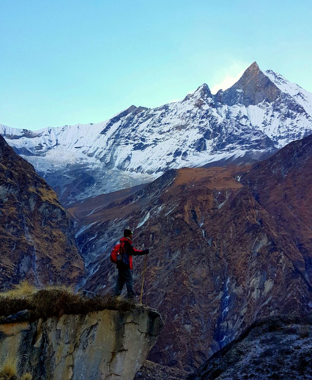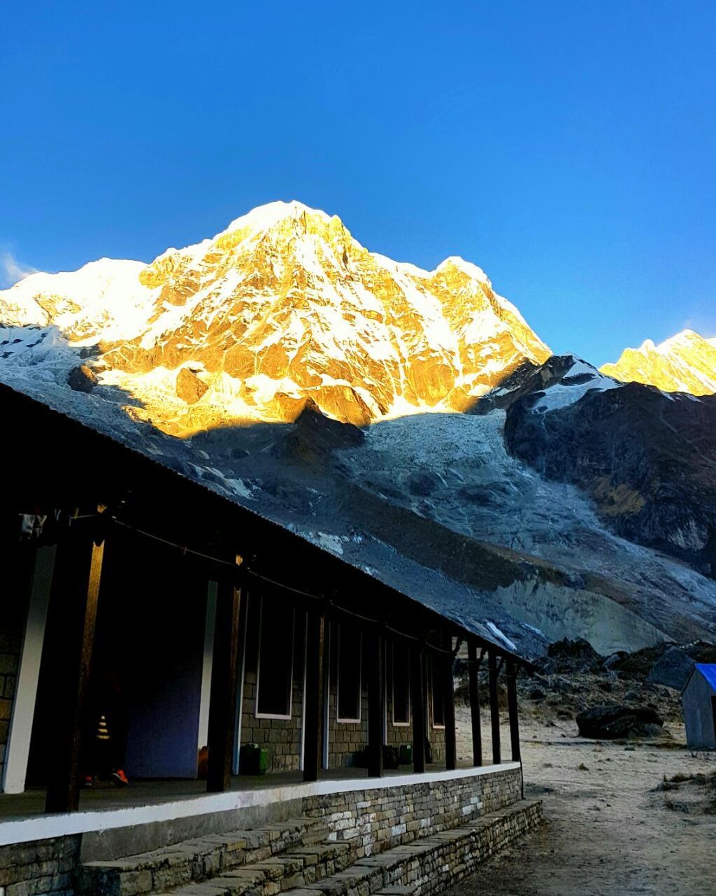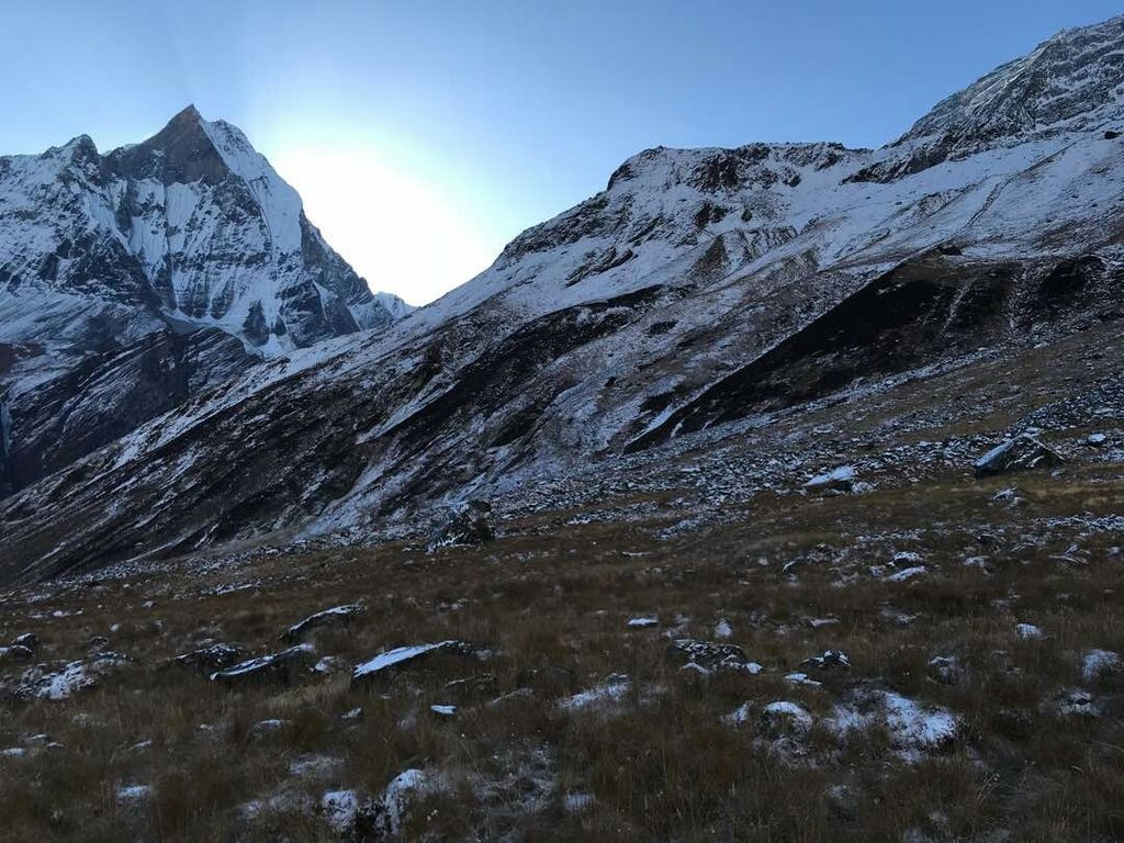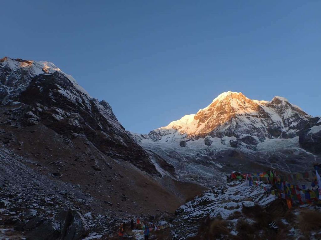 Climb gently through a river bed then over a steep trail over to the mountain side. The hike from Bagar to Machhapuchhre Base Camp is somewhat strenuous. From Machhapuchhre base camp we get excellent views of the majestic Machhapuchhre along with Mt. Hiunchuli, Annapurna South, Annapurna I, Annapurna III, Gandharvachuli and Gangapurna which is certainly a rewarding experience. The vegetation disappears on our way to ABC and the path widens as we enter the Annapurna sanctuary. From here, we get sensational views of the near-vertical south face of Annapurna towering above us. The sanctuary boasts of a dynamic view without anything impeding the 360-degree panorama. From the base camp we again get to savor mesmerizing views of the Machhapuchhre, Annapurna south, Annapurna I, Hiunchuli and other peaks.