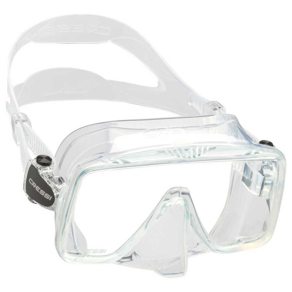 This frameless single glass mask is made of trendy shiny silicone and has a very small internal volume. Rigorous and squared design suitable even for demanding divers. Fits most face shapes. Buckle with micrometric adjustment system. Supplied in a sturdy protective box.