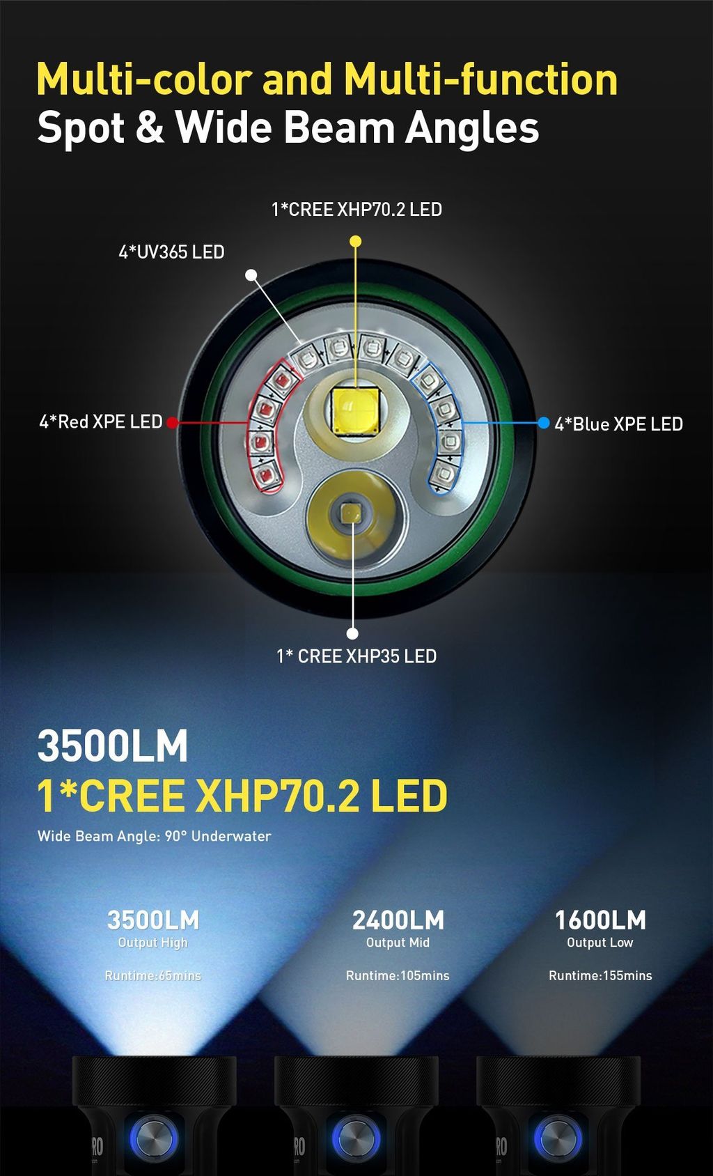 DIVEPRO M35 3500LUMENS MULTI-COLOR AND MULTI-FUNCTION
