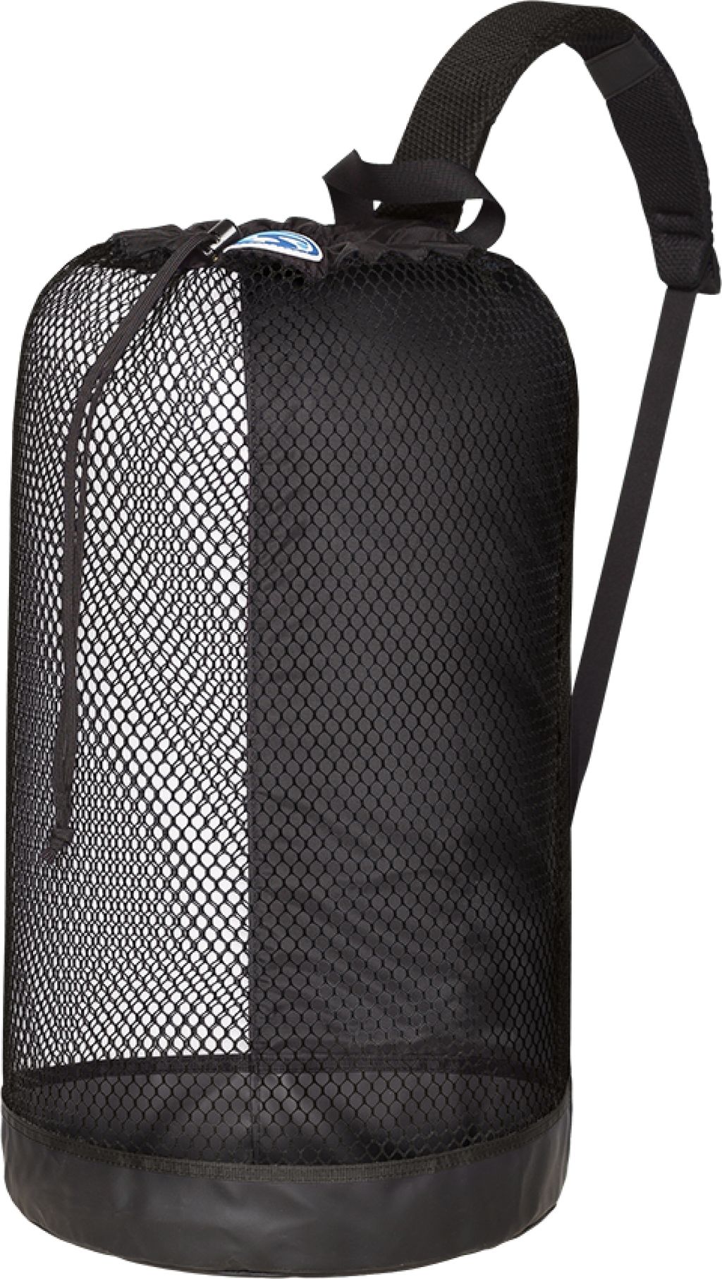 New density foam padded shoulder straps Outside wet/dry pockets 2 Carry handles Tough, snag-resistant polyester mesh Reinforced PVC bottom