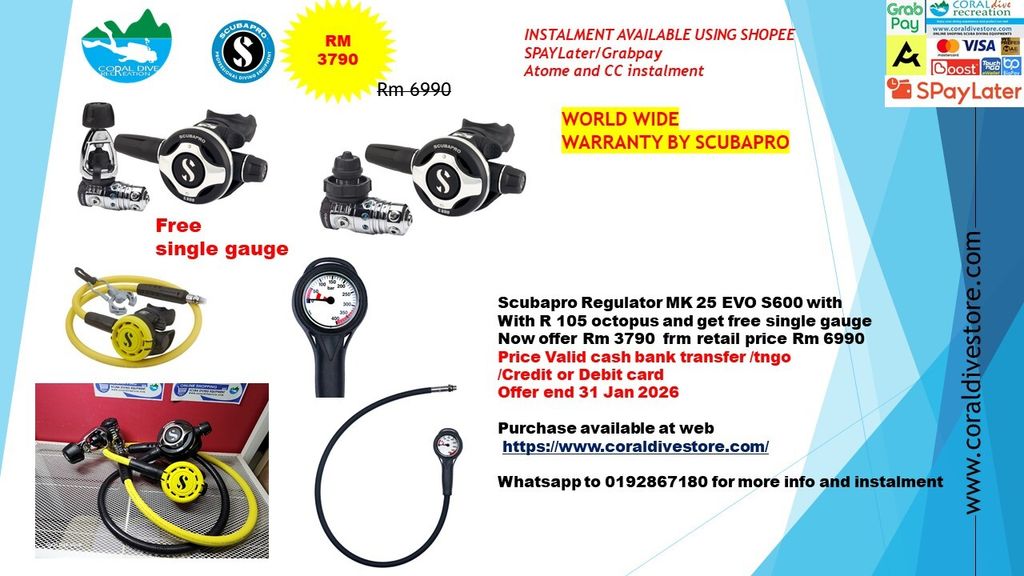 Scubapro MK25 EVO S600 R105 octopus set with free single gauge . offer end 31 Jan 2026