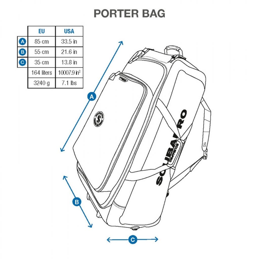 This gear carrier offers lots of volume to handle your gear. A bit smaller than its predecessor, it comes with reinforced ´´off-road´´ skate-style roller wheels plus a backpack system, so you´ll be able to easily roll or carry the bag wherever you want to go. But what´s really great about the Porter Bag is its easy-fold feature that allows it to be stowed away compactly as it awaits your next dive adventure.